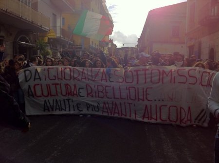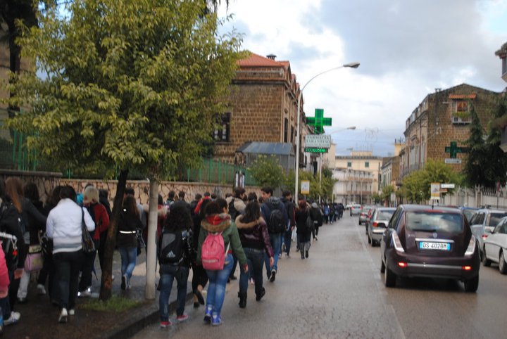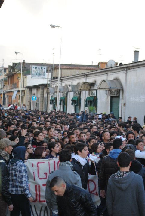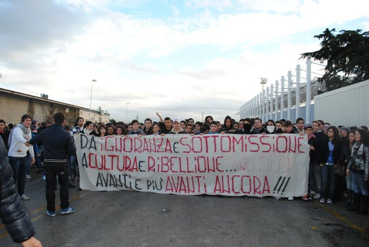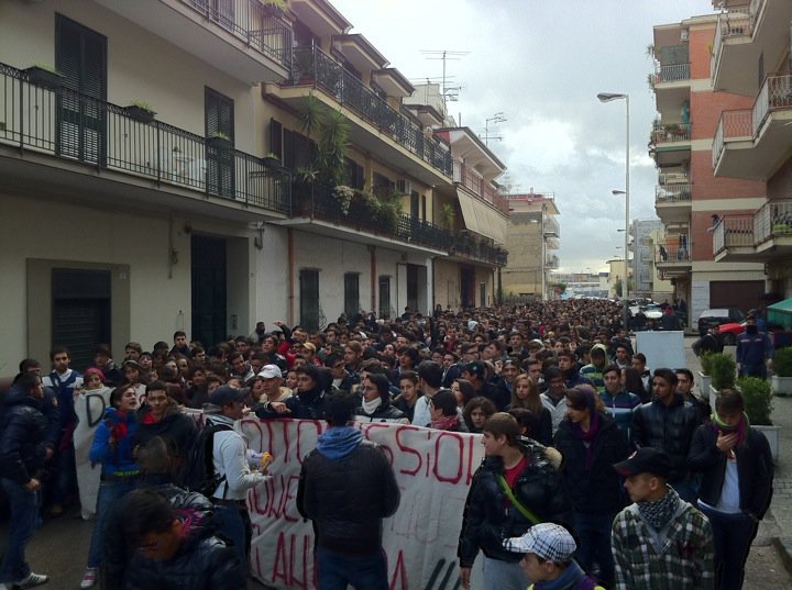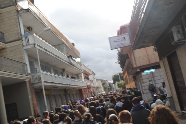 Napoli 3/12/10 : Stamattina circa 2000 studenti degli istituti della provincia nord orientale di Napoli , capeggiati dai militanti del Blocco Studentesco, hanno sfilato tra le strade di Frattamaggiore per ribadire la loro intenzione di difendere la scuola pubblica dai tagli previsti dalla riforma Gelmini. <<Ancora una volta, il Blocco Studentesco ha guidato un corteo spontaneo e trasversale, partito dal liceo scientifico Miranda di Frattamaggiore, seguito dagli studenti degli altri istituti Frattesi e dei comuni limitrofi, – afferma il responsabile provinciale del Blocco Studentesco Antonio Mollo – Come promesso,la nostra mobilitazione continua,coinvolgendo sempre più ragazzi,che vogliono lottare contro questa riforma,al dilà di ogni contrapposizione politica.E’ importante sottolineare-continua Mollo-la maturità di questi ragazzi,che partecipano attivamente in massa a questa mobilitazione,senza nessuna pregiudiziale ideologica;maturità che, purtroppo, non tutti in questa problematica città hanno,restando fermi a schemi vecchi di decenni!>>