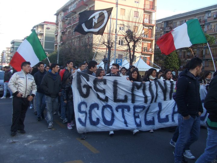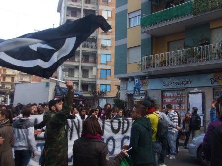San Giorgio a Cremano (Napoli) 10/12/10 :Il Blocco Studentesco ha partecipato a un corteo trasversale di circa 400 studenti degli istituti superiori ITI E.Medi e ITC R.Scotellaro. Un corteo che è sfilato per le vie della cittadina vesuviana, per ribadire il No degli studenti ai 3 milioni di tagli alla scuola pubblica, previsti dalla Riforma Gelmini.