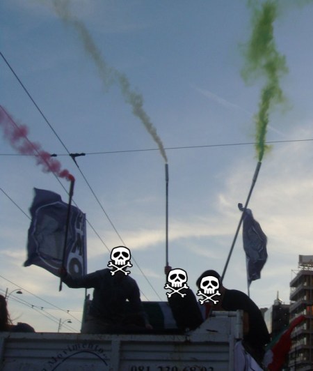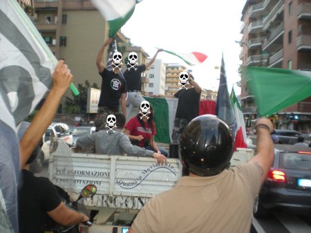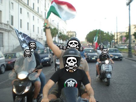 Napoli:Nel pomeriggio del 10 giugno circa 50 militanti dell’ass. H.M.O. a bordo di motorini capeggiati da una camionetta dalla quale svettavano bandiere dell’associazione e tricolori, hanno attraversato il centro della città da p.zza Carlo III sino a piazzale Tecchio passando per la zona universitaria.