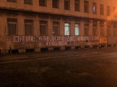 Ciao Pietro’’, si legge questa mattina sul muro della trafficata Via Marina a Napoli e su cavalcavia, ponti e muri di una cinquantina di grandi e piccole città italiane, da Udine a Sassari, passando per Trasacco e Terni. Sono gli striscioni, a firma CasaPound Italia, spuntati nella notte in tutto il paese per ricordare Pietro Taricone, morto il 29 giugno del 2010 a Terni per un incidente con il paracadute e sepolto proprio a Trasacco, in provincia dell’Aquila. Un omaggio delle tartarughe frecciate all’amico scomparso un anno fa, che con il suo entusiasmo contagioso era stato tra i principali fautori della nascita della squadra di paracadutismo sportivo di Cpi, il ‘Gruppo Istinto rapace’, che l’attore aveva tenuto a battesimo nel febbraio del 2010.