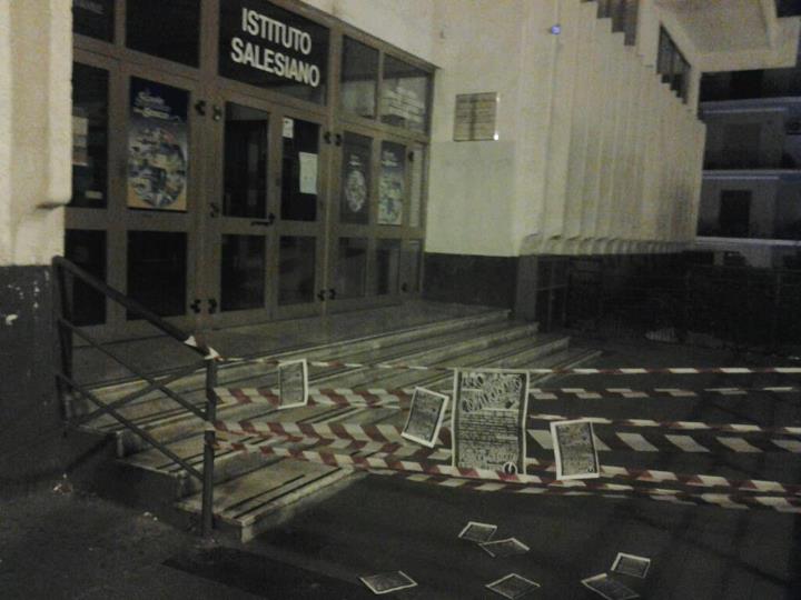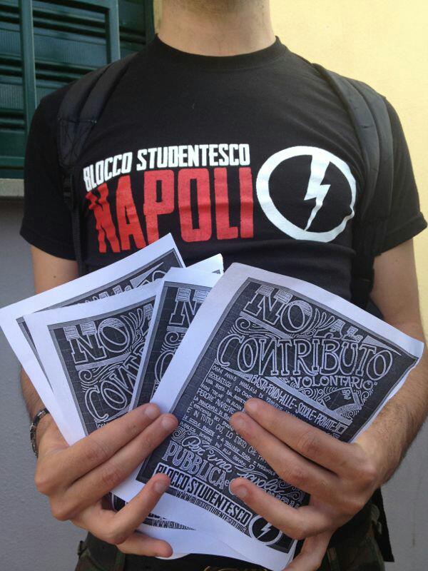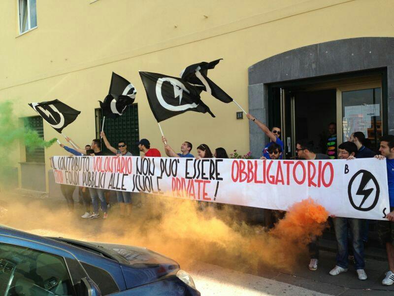 Napoli, 10 Maggio – Anche a Napoli , come in diverse città d’Italia, il Blocco Studentesco , nella notte ha sigillato con nastro bianco e rosso gli ingressi di una decina di scuole private della città, e questa mattina i militanti del Bs hanno svolto un blitz Ufficio Scolastico Regionale per la Campania con bandiere e fumogeni , durante il quale è stato effettuato un volantinaggio ed esposto lo striscione ‘Il contributo volontario non può essere obbligatorio, stop ai fondi pubblici per le scuole private’.