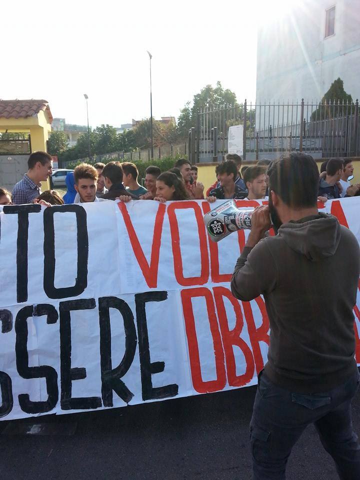 Castellammare di stabia ,3 Ottobre – Questa mattina i militanti del Blocco Studentesco sono scesi in piazza al fianco degli studenti dell’Istituto Alberghiero Raffaele Viviani di Castellammare di Stabia , con uno striscione recitante “Il contributo volontario non può essere obbligatorio” per protestare contro la decisione della dirigente scolastica, Luciana di Gennaro, di non ammettere alle lezioni gli studenti che si sono rifiutati di versare il contributo volontario richiesto dalla scuola .
