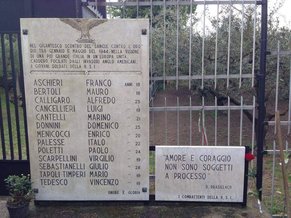 Era l’estate 1944 quando, durante i bombardamenti, aerei angloamericani, lanciarono dei «volantini» che annunciavano l’avvenuta esecuzione di giovani «sabotatori» appartenenti ai «Reparti Speciali» della RSI. Insieme alla logica del «bombardamento a tappeto», il lancio di questi «volantini», rientrava nella tecnica della «guerra del terrore». Su un lato del foglio erano stampate le foto dei giovani giustiziati, sul retro erano indicati i loro nomi, il luogo e la data di nascita. Il testo così continuava: <> . La legge internazionale ammette la pena di morte quale punizione dei reati quali spionaggio e sabotaggio. Quei giovani appartenenti ai «Reparti Speciali» della RSI, se catturati dagli Alleati non in uniforme regolamentare, erano passibili della pena di morte. Dopo il disastro dell’8 settembre ’43, la “resistenza” contro le forze occupanti straniere, nel Sud d’Italia, fu condotta da fascisti. Queste erano piccole formazioni clandestine che operavano isolatamente. Nel Nord, nella nascente RSI, si formarono «Servizi Speciali», nei quali operavano giovani volontari che, audacemente, attraversavano le linee del fronte per operare con azioni di sabotaggio e raccolta d’informazioni. Il loro numero era di circa 4000 volontari e di questi, tra i settanta e i 100, furono catturati e passati per le armi. Quei ragazzi provenivano da ogni regione d’Italia. “Nel gigantesco scontro del sangue contro l’oro, qui tra gennaio e maggio del 1944, nella visione di una più grande Italia e in un’Europa unita, caddero, fucilati dall’ invasore anglo americano, i giovani soldati della R.S.I.”; questo è inciso sulla lapide di Sant’Angelo in Formis (CE) dove ragazzi che credevano in un ideale furono fucilati, trattati come spie degne di disprezzo e presto dimenticati. In realtà, però, furono dei puri eroi. I primi: Bertoli Mauro e Luigi Cancellieri, rifiutando l’armistizio dell’8 settembre, decisero di arruolarsi nei «Servizi Speciali» dell’Esercito della RSI. Iniziarono immediatamente le missioni loro assegnate ma furono catturati dagli inglesi nel dicembre 1943 e furono sottoposti a torture e interrogatori; non rivelarono nulla che potesse compromettere le missioni degli altri camerati. La mattina del 21 gennaio 1944 furono caricati su un camion e trasportati sul luogo dell’esecuzione, in una cava di S. Angelo in Formis. Marino Canteli ed Enrico Menicocci, dopo la cattura, gli interrogatori ed il giudizio, furono condotti anche loro, il 16 aprile 1944, nelle cave di S. Angelo in Formis per essere giustiziati. Il 30 aprile 1944 fu la volta di Italo Palesse, Franco Aschieri, Mario Tapolin e Vincenzo Tedesco.