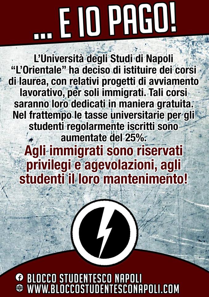 In una Napoli in cui ormai un bambino su tre è analfabeta o, seppur in grado di leggere, fa fatica a comprenderne il significato, i figli del politicamente corretto che risiedono ai vertici del celebre ateneo “L’Orientale” hanno ritenuto opportuno, in accordo con il Cicla (Centro interdipartimentale dei servizi linguistici e audiovisivi) e con la Onlus Less (Associazione per la lotta all’esclusione sociale), aprire le porte delle proprie aule, a titolo completamente gratuito, ai migranti.