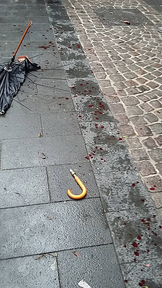 Tentato assalto alla sezione Berta di CasaPound italia Napoli a via Foria. Un corteo di antagonisti ha modificato il suo percorso ed ha tentato di assaltare la sezione. Gli assalitori sono stati respinti dalla decisa risposta dei militanti e dei cittadini della zona. Ferito un commerciante (nella foto il sangue del commerciante); seguiranno aggiornamenti.
