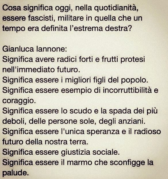 Cosa significa essere fascista? Significa essere l’unica speranza e il radioso futuro della nostra terra.