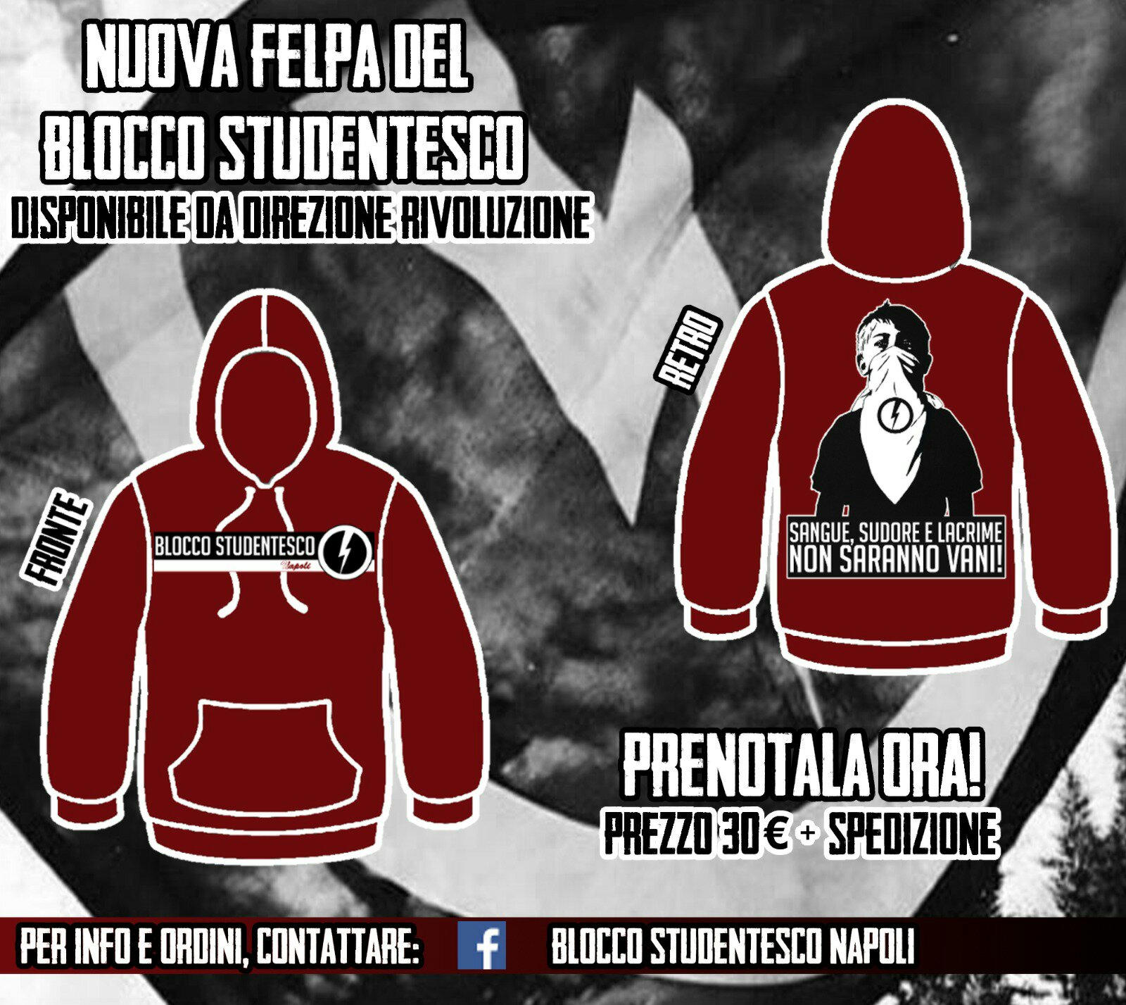 Ricomincia al meglio questo anno di battaglie: copriti bene con la nuova felpa del Blocco Studentesco Napoli.