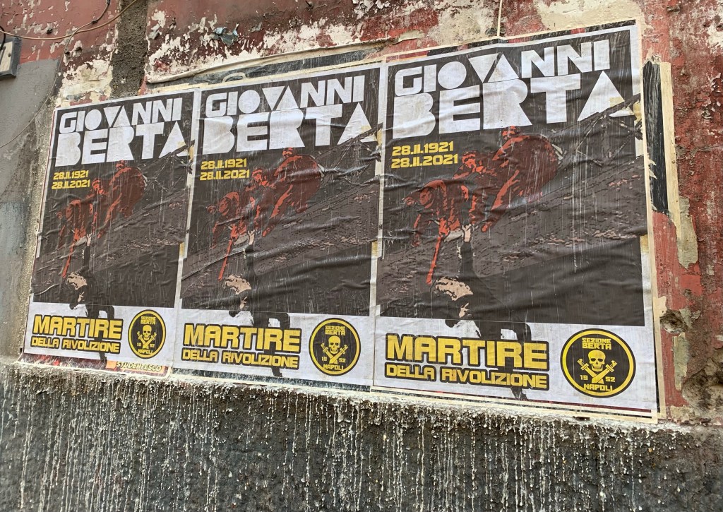 La figura di Giovanni Berta assurge alla memoria mitica in un contesto storico di importanza centrale, mai abbastanza ricordato: quello dei tremendi anni tra il 1919 e il 1921, caratterizzati – ad appena un anno dalla Grande Guerra – da un livello violenza politica senza precedenti, che vede i militanti socialisti e comunisti attivamente impegnati ad appiccare scintille di rivoluzione sull’onda lunga dell’ottobre rosso del 1917. Sull’altro versante, il 1919 vede la fondazione dei Fasci di Combattimento: se reazione o semplice reificazione di energie contrapposte al bolscevismo, è una querelle che lasciamo alla storiografia.
